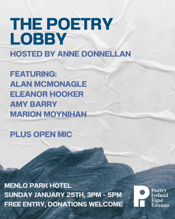The Poetry Lobby returns this month with its first reading of the year, taking place on Sunday, January 25th, at the Menlo Park Hotel in Galway, from 3 to 5pm.